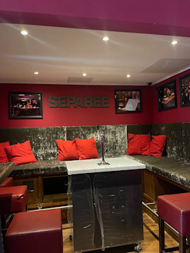 3 hours Bierpong-Tisch, 15 liter Bier, 1-Liter-Flasche Wodka plus Getränke zum Mixen, 1 Liter Rum, Gin oder Whisky mit Mixern, 2 x 0,7-Liter Flasche Berliner Luft, Pizza eurer Wahl pro Person, Shotpong, 3 hours Separée, 2 x Bierpong-Tisch,
